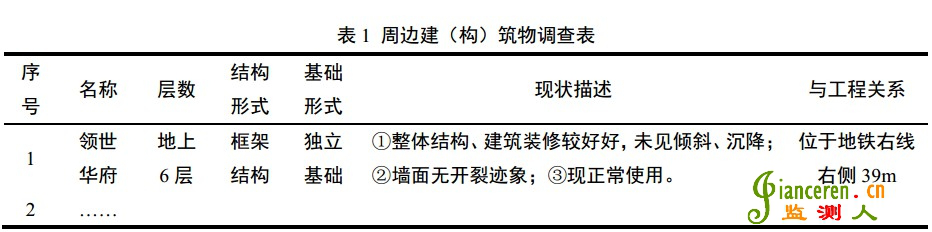 (5)項(xiàng)目周邊各類監(jiān)測對象(建筑物、管線等)的原始資料與使用現(xiàn)狀資料,一般可通過施工單位獲取,或自行整理;