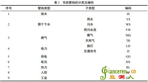 由于管線大多埋于地下,對于監(jiān)測單位很難對其進(jìn)行調(diào)查,僅能通過設(shè)計(jì)單位提供的綜合管線圖以及現(xiàn)場反饋的情況進(jìn)行了解。從監(jiān)測的角度來說,應(yīng)特別注意空間上與工程有緊密關(guān)系且有壓力的管線。市政管線的類型可參考下表。