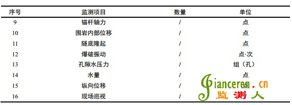 本部分應(yīng)根據(jù)合同文件、設(shè)計(jì)圖紙、監(jiān)測范圍以及工程實(shí)際情況,列出應(yīng)當(dāng)進(jìn)行監(jiān)測的項(xiàng)目的詳細(xì)名稱。若編寫方案時,監(jiān)測工作量已經(jīng)確定,可列出各監(jiān)測項(xiàng)目的詳細(xì)工作量,且注明單位,統(tǒng)計(jì)形式可參考下表。