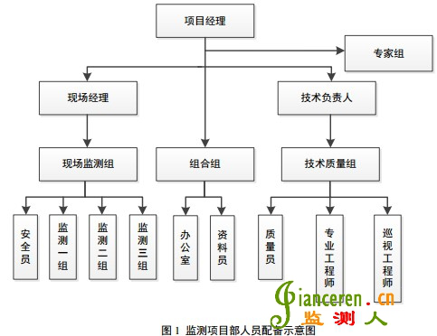 在敘述完監(jiān)測技術(shù)保證措施后,本部分應(yīng)對如何合理優(yōu)化配置相關(guān)人員,以滿足監(jiān)測工作要求, 同時兼顧經(jīng)濟(jì)原則進(jìn)行詳細(xì)介紹。建議本部分參考投標(biāo)文件中相關(guān)人員信息,通過項(xiàng)目部人員組織架構(gòu)圖與人員信息列表的形式進(jìn)行編寫,具體形式可參考圖 3.1 及表 3.5。